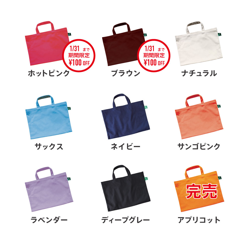 - 片面1色プリント20枚以上をご注文でバッグ枚数と同じ枚数まで可能 (バッグの生地色は混在できます)