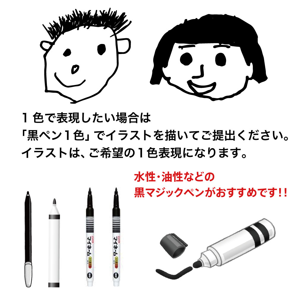 似顔絵やイラストを「完全デザイン入稿」でご提出される場合は、A4サイズにデザインが納まるように配置してください。1色、フルカラーそれぞれ描き方は以下を参考にしてください。